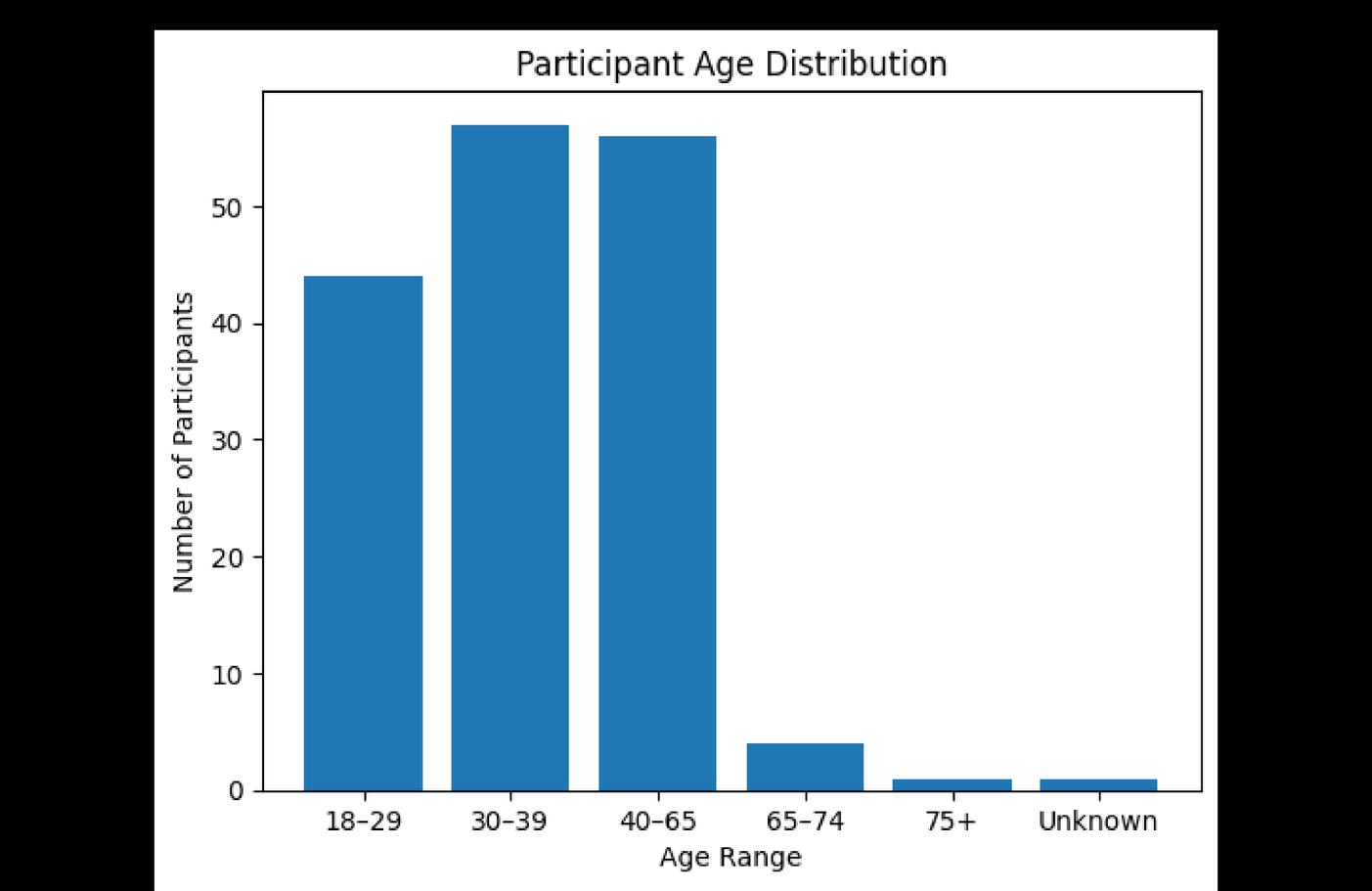 • Participants span multiple generations, with the largest concentration between ages 30–65.
